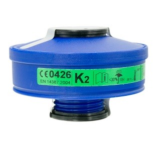 Filtro antigas a vite unificata EN 148-1 per ammoniaca (NH3) e suoi derivati. Il filtro può essere utilizzato con maschere intere TR82, TR2002 CL2 e TR2002 CL3 e semimaschere ST 85 o similari, purché dotate di raccordo EN 148-1.