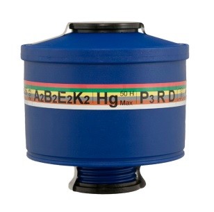 Filtro combinato a vite unificata EN 148-1 per vapori organici con punto di ebollizione superiore a 65°C, gas e vapori inorganici, Anidride Solforosa (SO2 ), Ammoniaca (NH3 ) e suoi derivati, vapori di mercurio, polveri, fumi e nebbie. Il filtro può essere utilizzato con maschere TR82, TR2002 CL2 e TR2002 CL3 o similari, o semimaschere come ST85, purché dotate di raccordo EN 148-1.