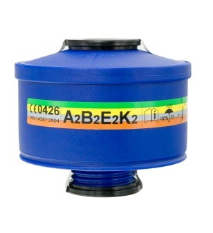 Filtro antigas a vite unificata EN 148-1 per vapori organici con punto di ebollizione superiore a 65°C, gas e vapori inorganici, Anidride Solforosa (SO2 ), Ammoniaca (NH3 ) e suoi derivati. Il filtro può essere utilizzato con maschere TR82, TR2002 CL2 e TR2002 CL3 o similari, purché dotate di raccordo EN 148-1