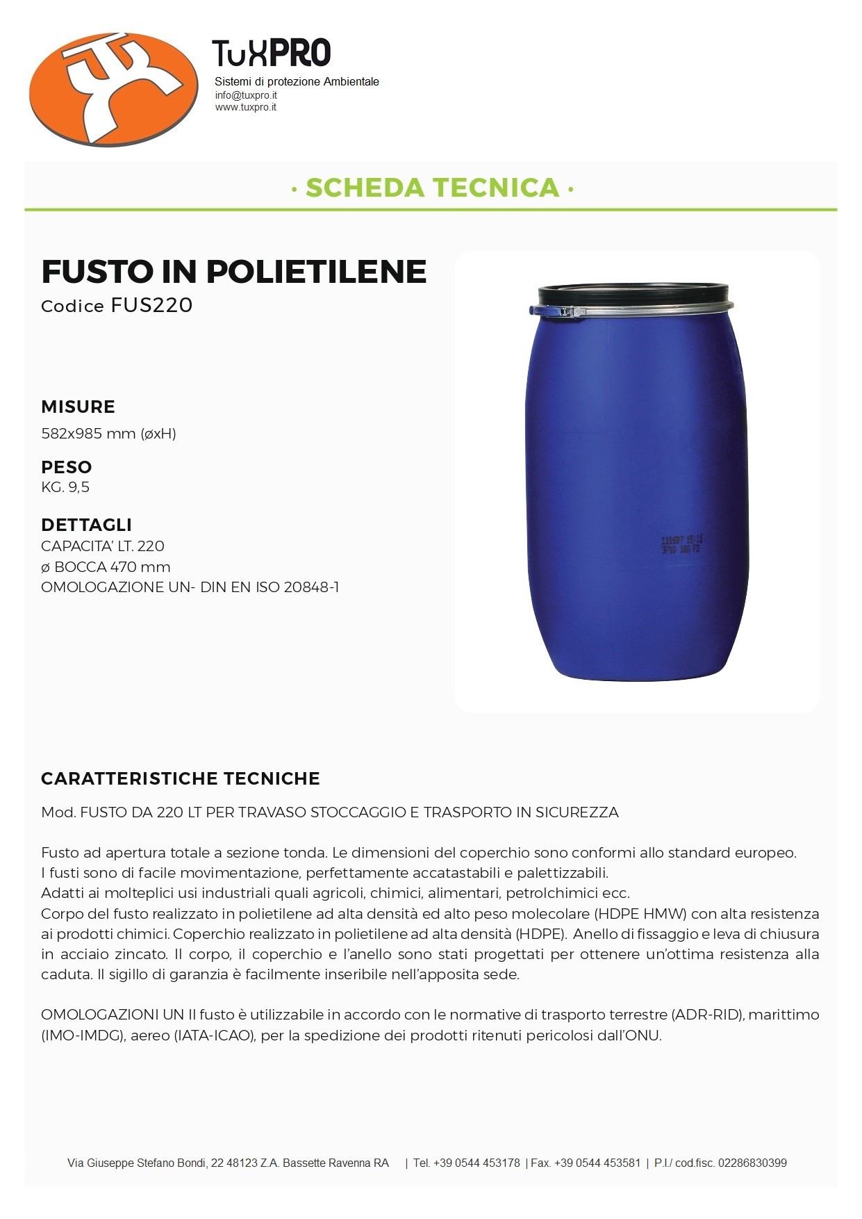 Mod. Fusto da 220 lt per travaso stoccaggio e trasporto in sicurezza.