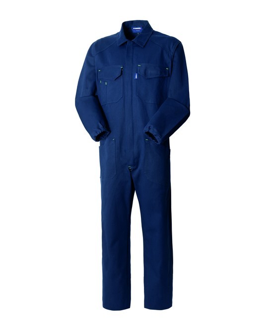 Tuta da lavoro con chiusura centrale con cerniera coperta, elastico in vita posteriore, schiena intera.