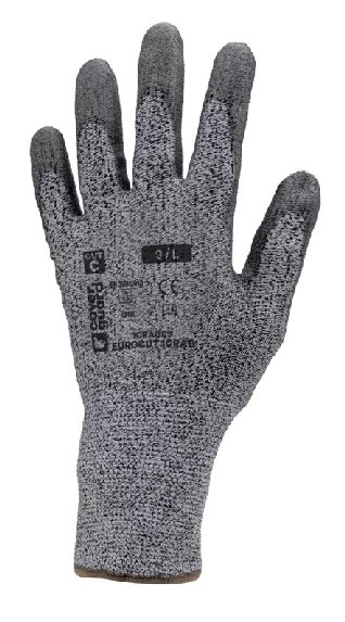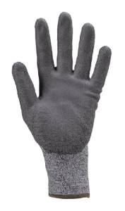 Maglia grigia senza cuciture realizzata in HDPA, elastan, rivestimento del palmo in PU grigio, polsino in maglia.