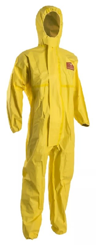 Tuta multistrato (90g/m2) in polietilene laminato (44%) + 3 strati di polipropilene (56%) Protezione da contaminazioni di particelle radioattive (EN 1073-2 class 2) Protezione da agenti infettivi secondo la normativa EN 14126: 2003 Cuciture coperte da una banda gialla termosaldata per una protezione ottimale Cappuccio elasticizzato 3 pezzi Sottogola Zip con lista esterna fermata con adesivo Vita, polsini e risvoltini elasticizzati Passanti elastici, alle caviglie e ai polsini, per una migliore tenuta anche durante i movimenti Colore : giallo per una maggiore visibilità