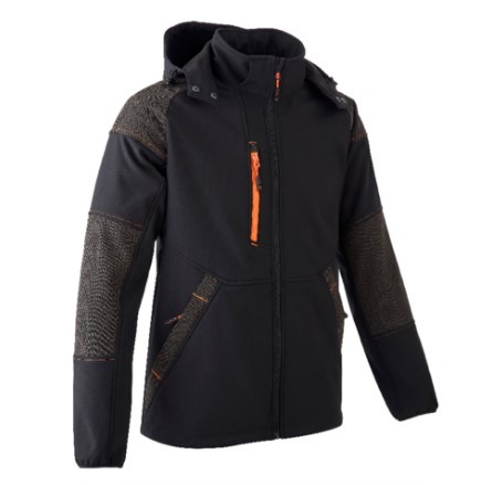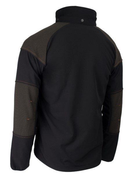 Softshell: 94% PES / 6% EA + Membrana TPU + Fleece - 350 g/m² Impermeabilità: 8.000 mm / Traspirabilità: 3.000 g/m2 / 24H Rinforzo Ripstop: spalle + avambraccio Cerniera centrale + Protezione per il mento Gomiti preformati + Fondo maniche con sbieco elasticizzato Cerniere nascoste sotto le ascelle per la ventilazione con soffietto in rete 3 tasche Cappuccio fisso + Coulisse con blocchi laterali