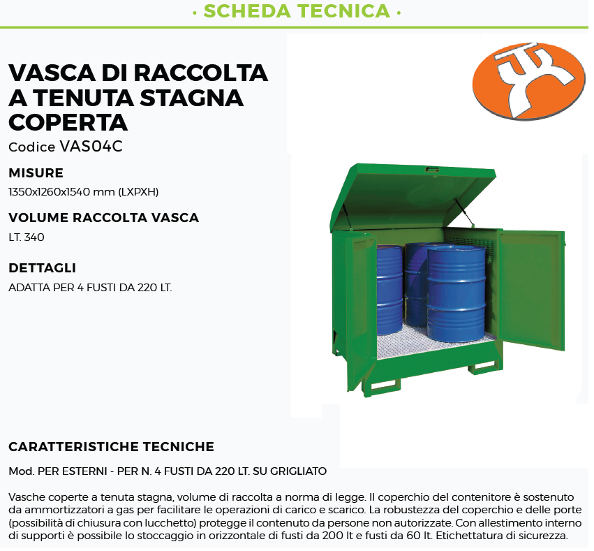 Vasche coperte a tenuta stagna, volume di raccolta a norma di legge.