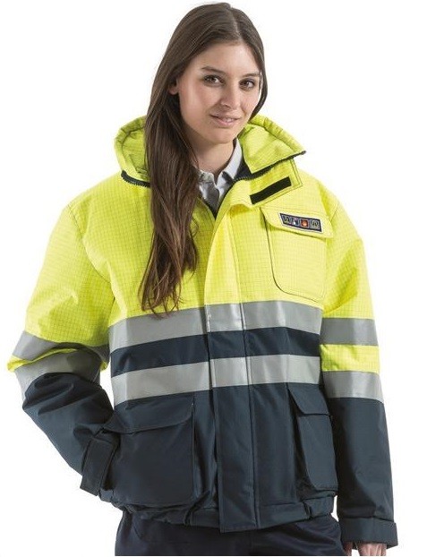 Giubbotto chiusura con cerniera in plastica ricoperta da patella con velcro alle estremità.