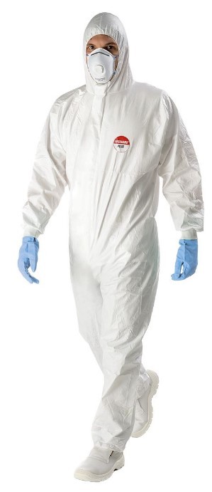 Tuta protettiva monouso Lifeguard Plus in tessuto laminato di colore bianco con cappuccio