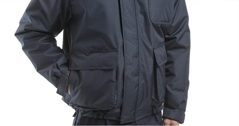 Giubbotto chiusura con cerniera in plastica ricoperta da patella con velcro alle estremità.
